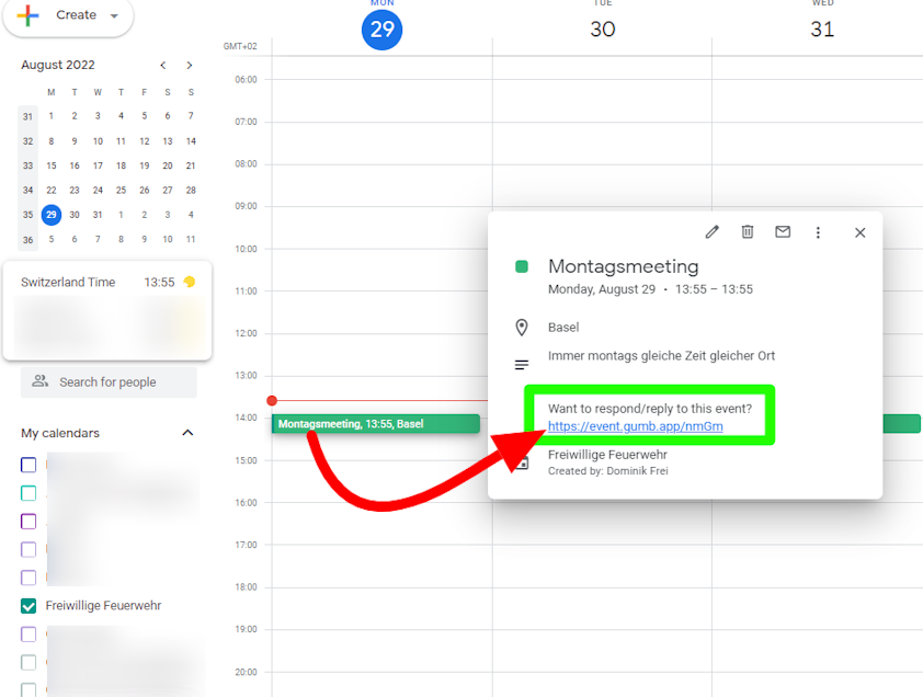 - Automatic updates: Changes made in Gumb appear in your Google Calendar within a few minutes. Each event includes direct links to RSVP or view details.