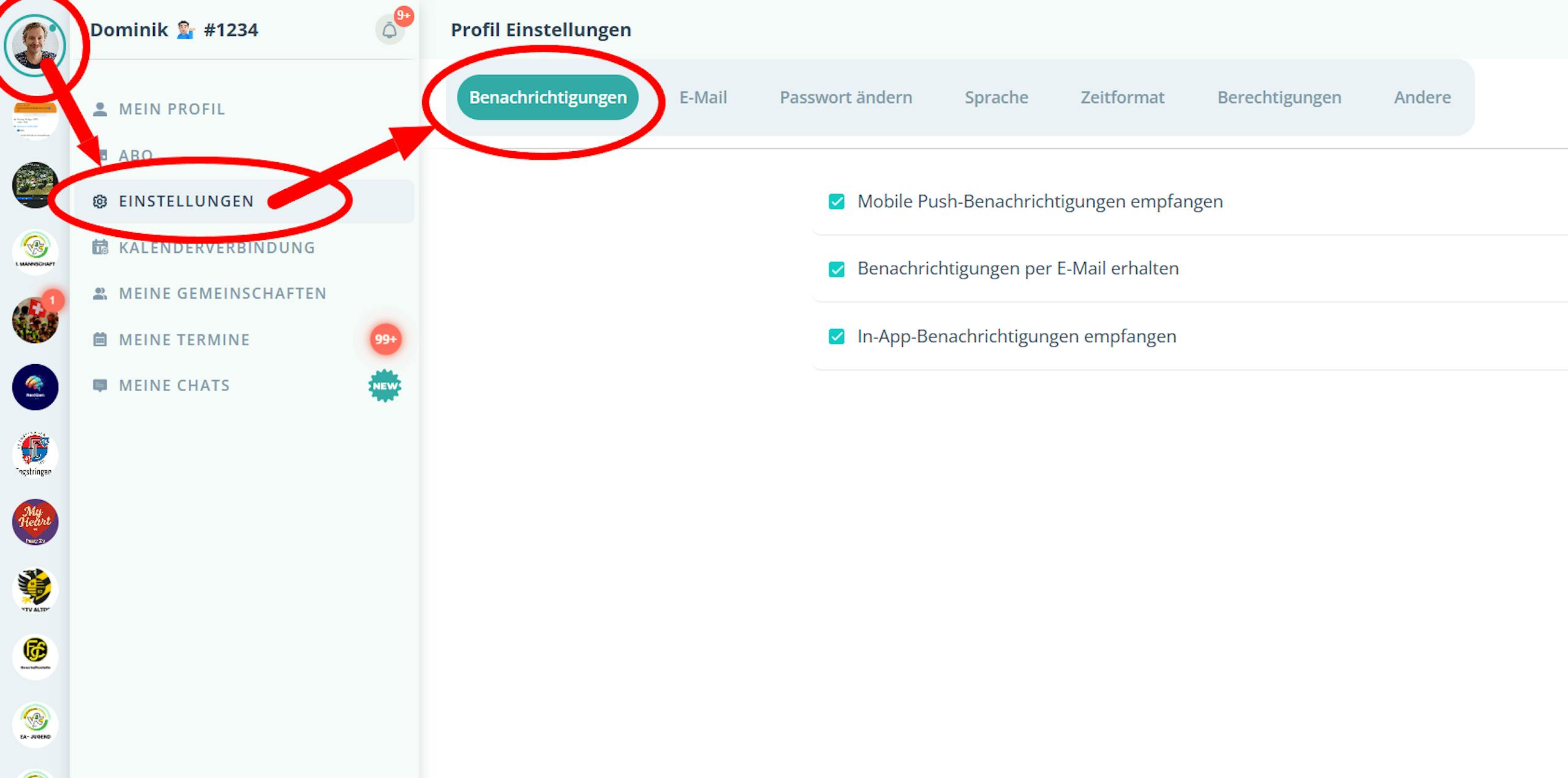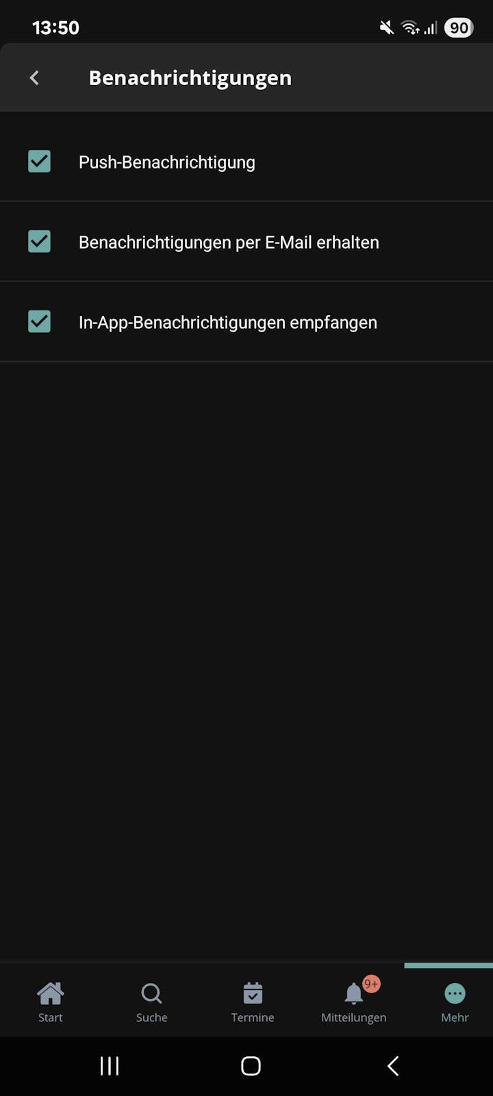 - Gehe zu deinem Profil/Mehr → Einstellungen → Benachrichtigungen.